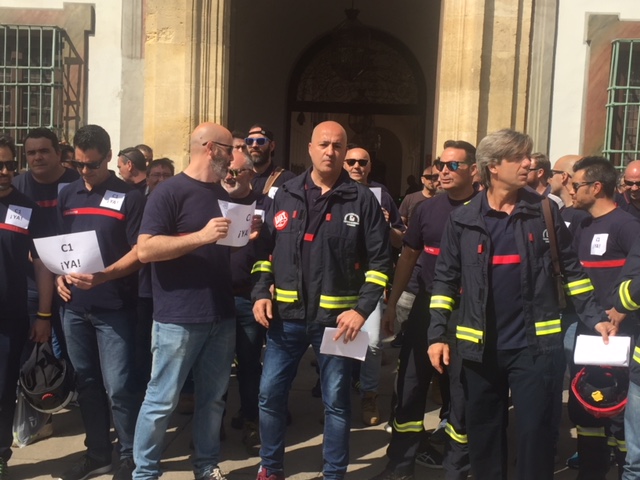 Ante la falta de Negociación del Consorcio con sus respectivas Secciones Sindicales, así como el incumplimiento de los Acuerdos alcanzados en Mesa General de Negociación y en particular el relativo a la Promoción al Subgrupo C1 del personal operativo del Servicio, los Sindicatos con representación en el Consorcio Provincial de Prevención y Extinción de Incendios y Protección Civil de Córdoba (CPPEIPCC.), UGT – CCOO – CSIF– SIBCC, se han concentrado, hoy jueves 26 de abril, en la puerta de la Excma. Diputación de Córdoba.