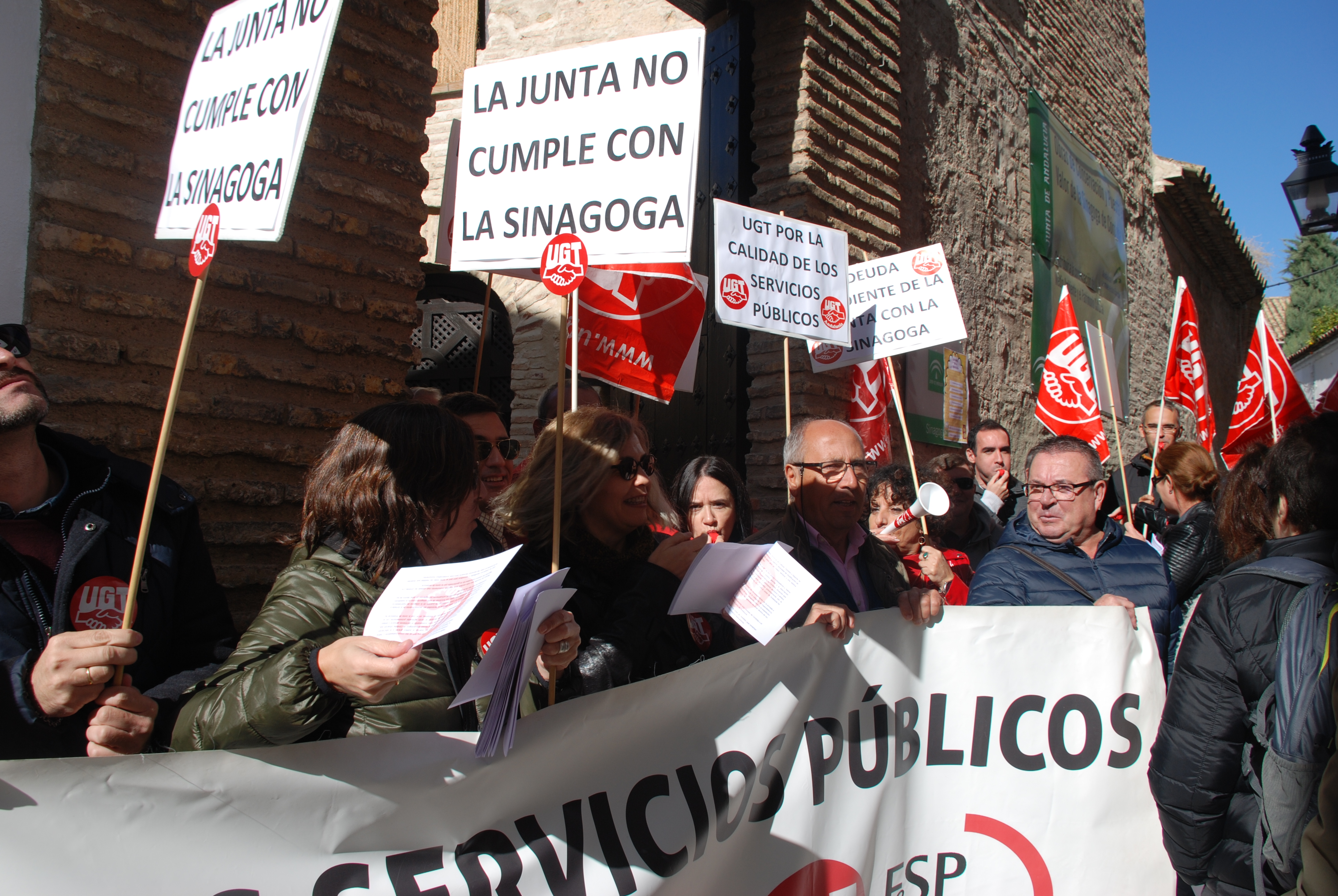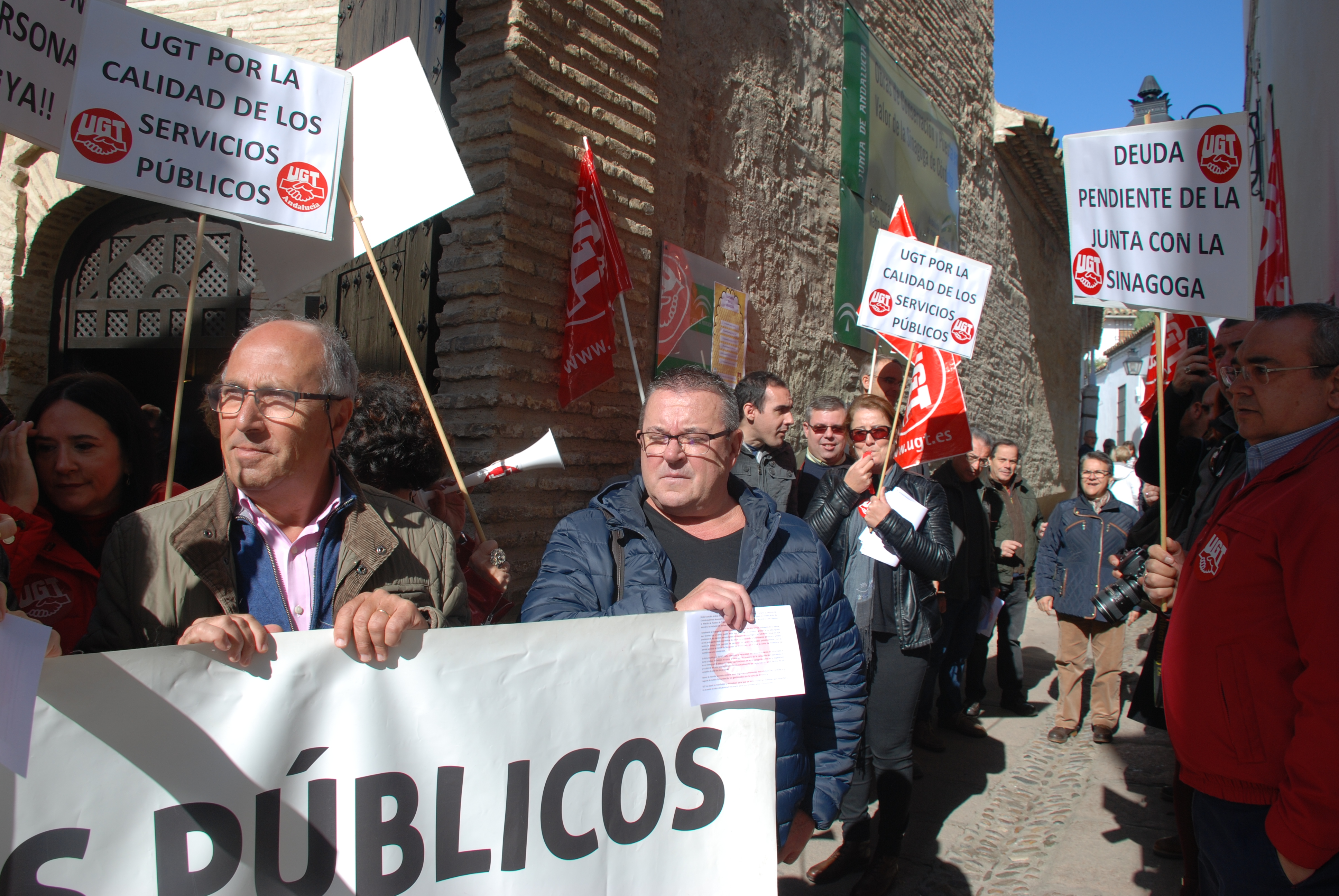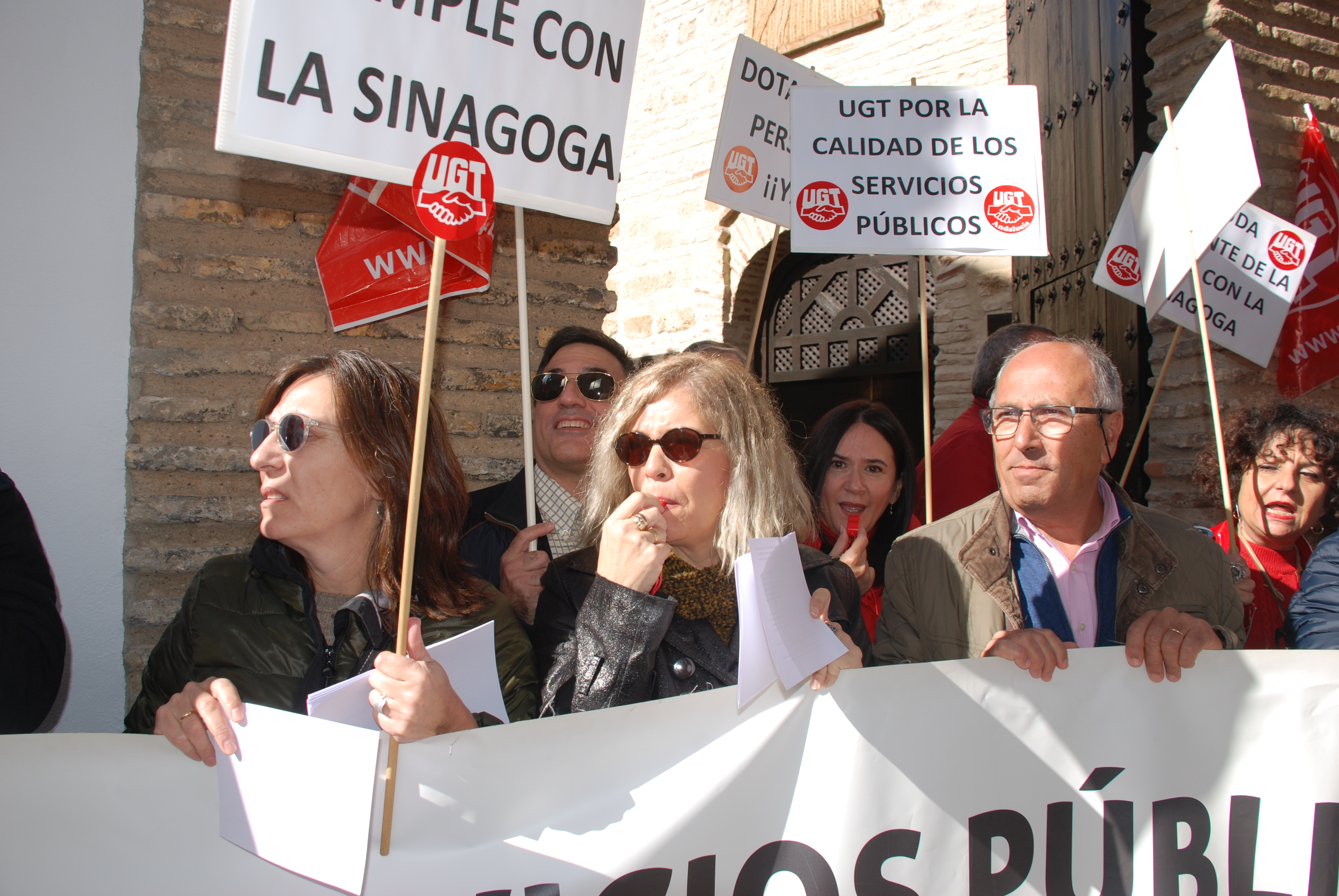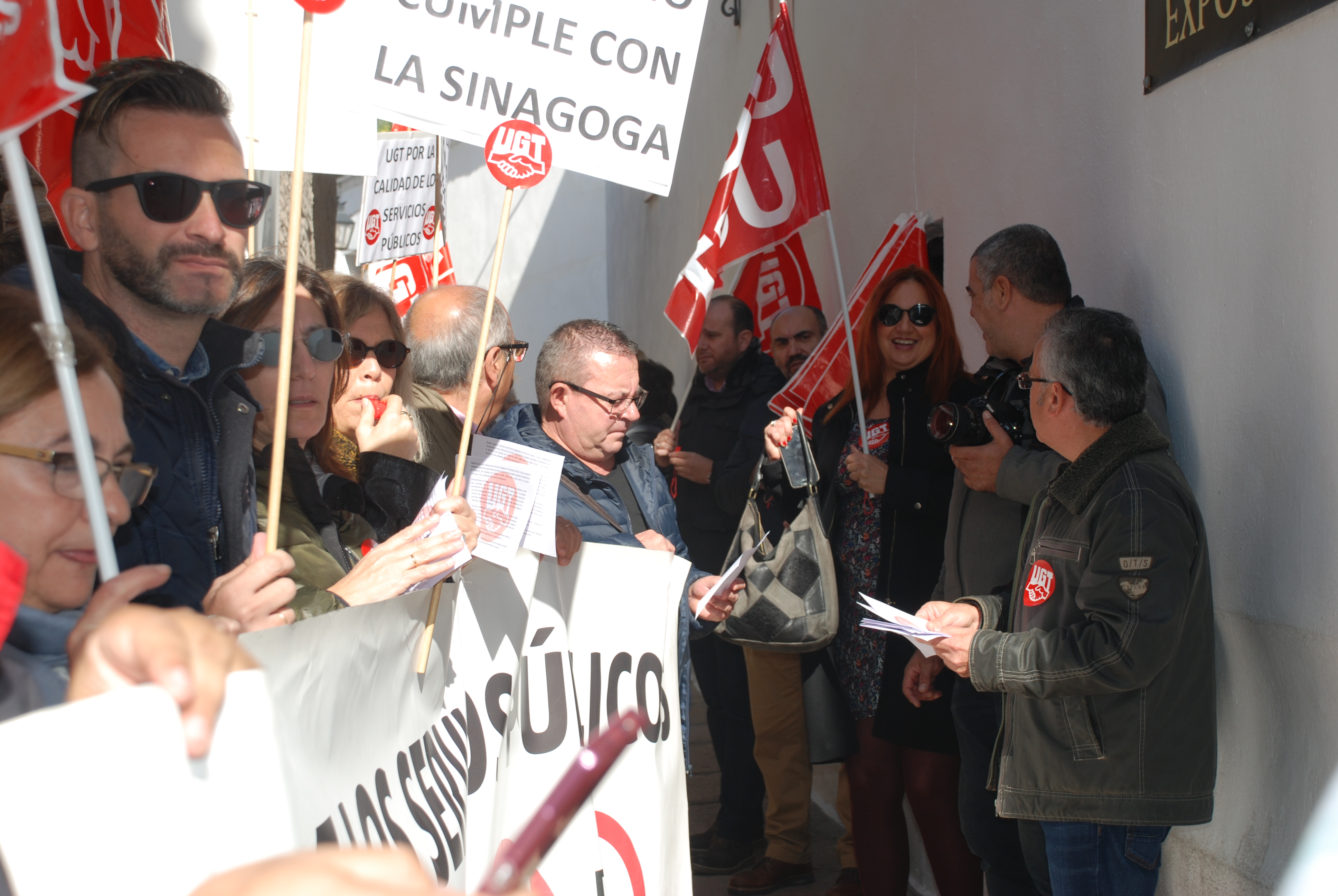 Esta mañana nos hemos concentrado en las puertas de la Sinagoga para reclamar la urgente necesidad de modificación de la Relación de Puestos de Trabajo de dicho centro, en aras de un buen funcionamiento, un mejor servicio y una óptima atención a los visitantes de este enclave monumental.