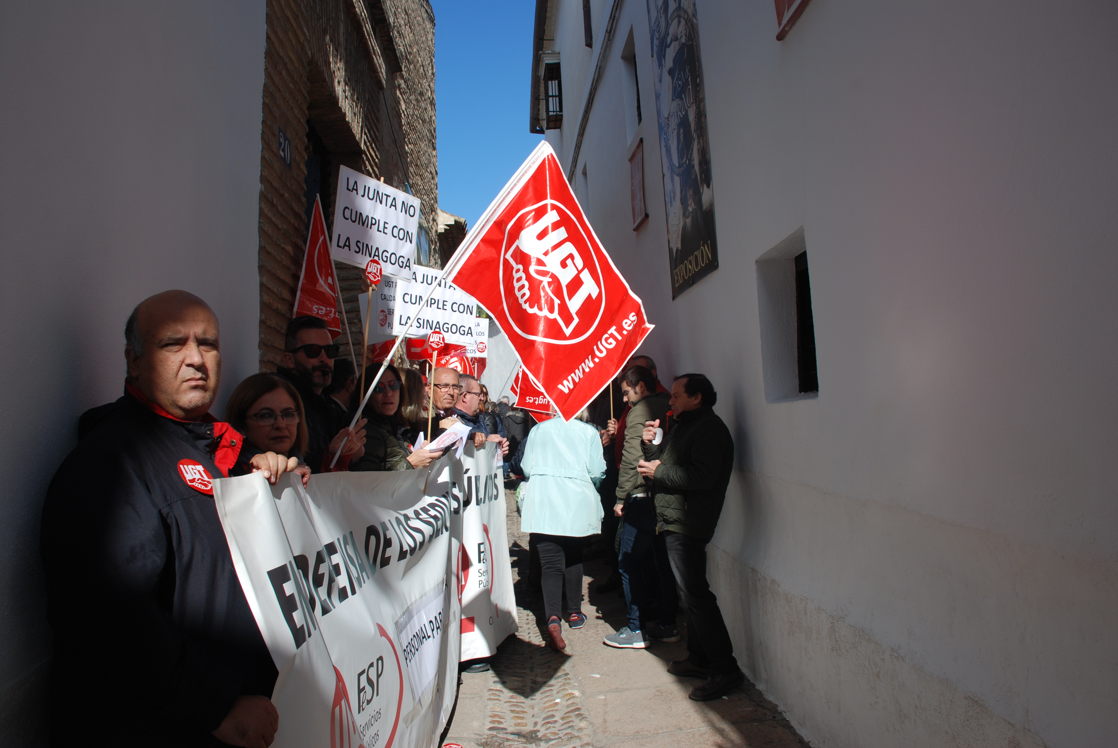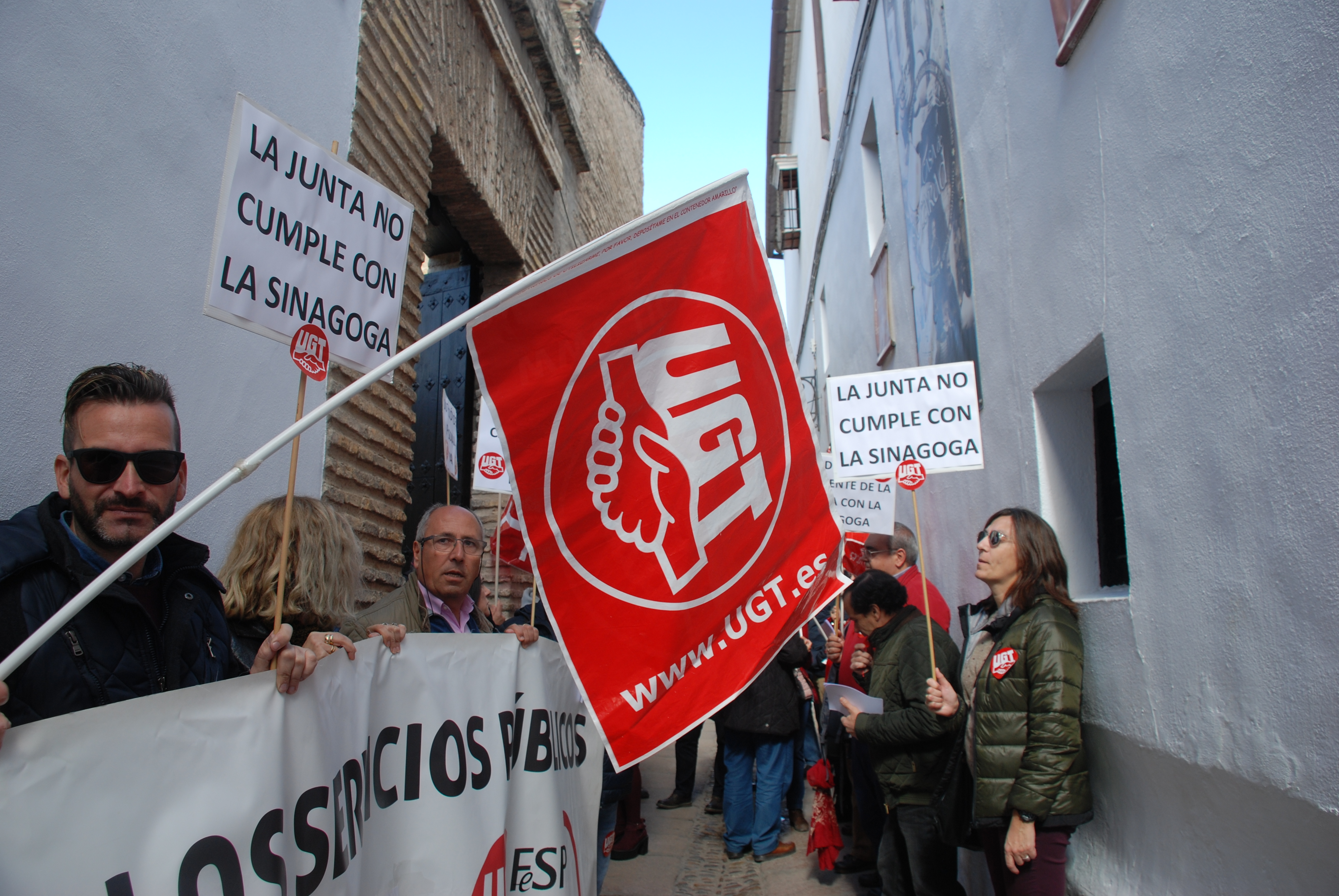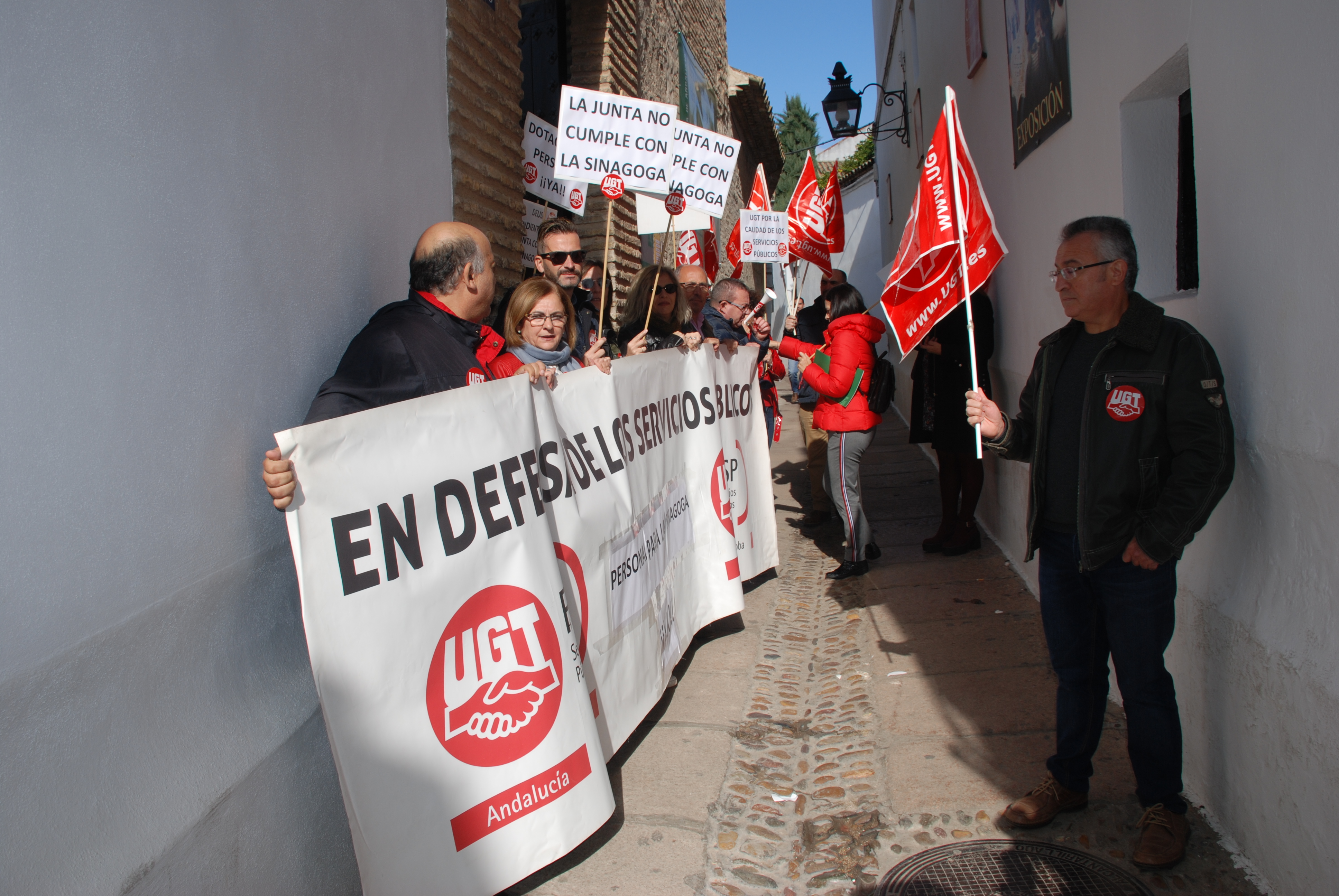 Esta mañana nos hemos concentrado en las puertas de la Sinagoga para reclamar la urgente necesidad de modificación de la Relación de Puestos de Trabajo de dicho centro, en aras de un buen funcionamiento, un mejor servicio y una óptima atención a los visitantes de este enclave monumental.