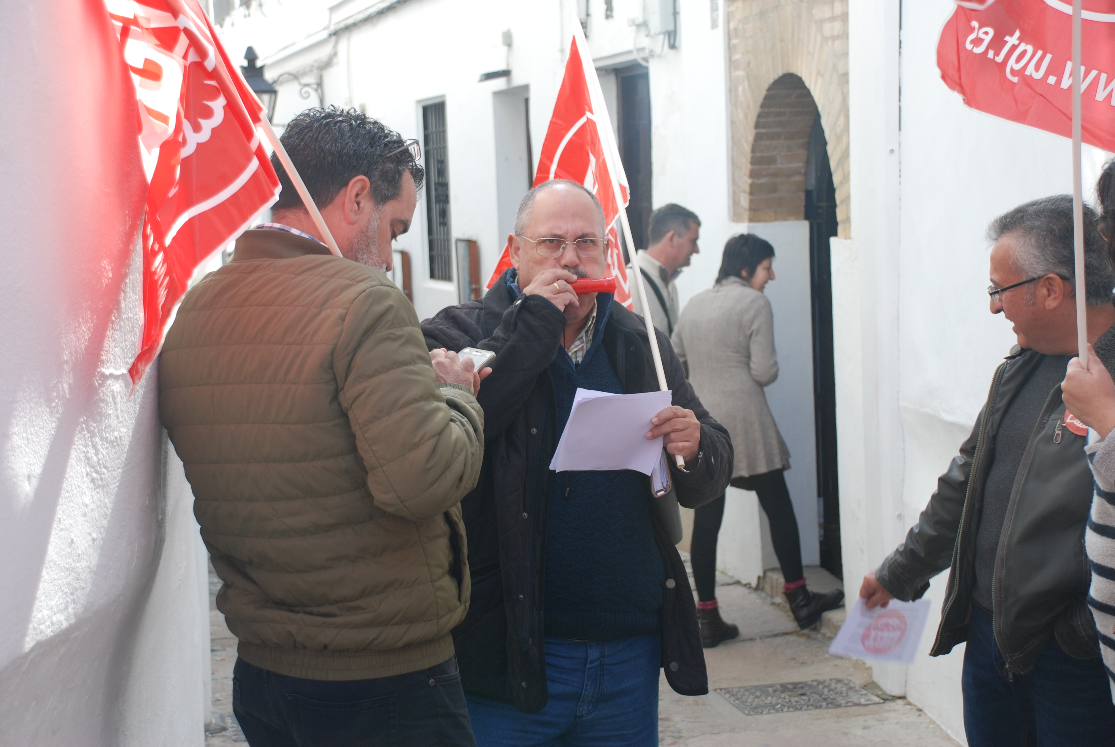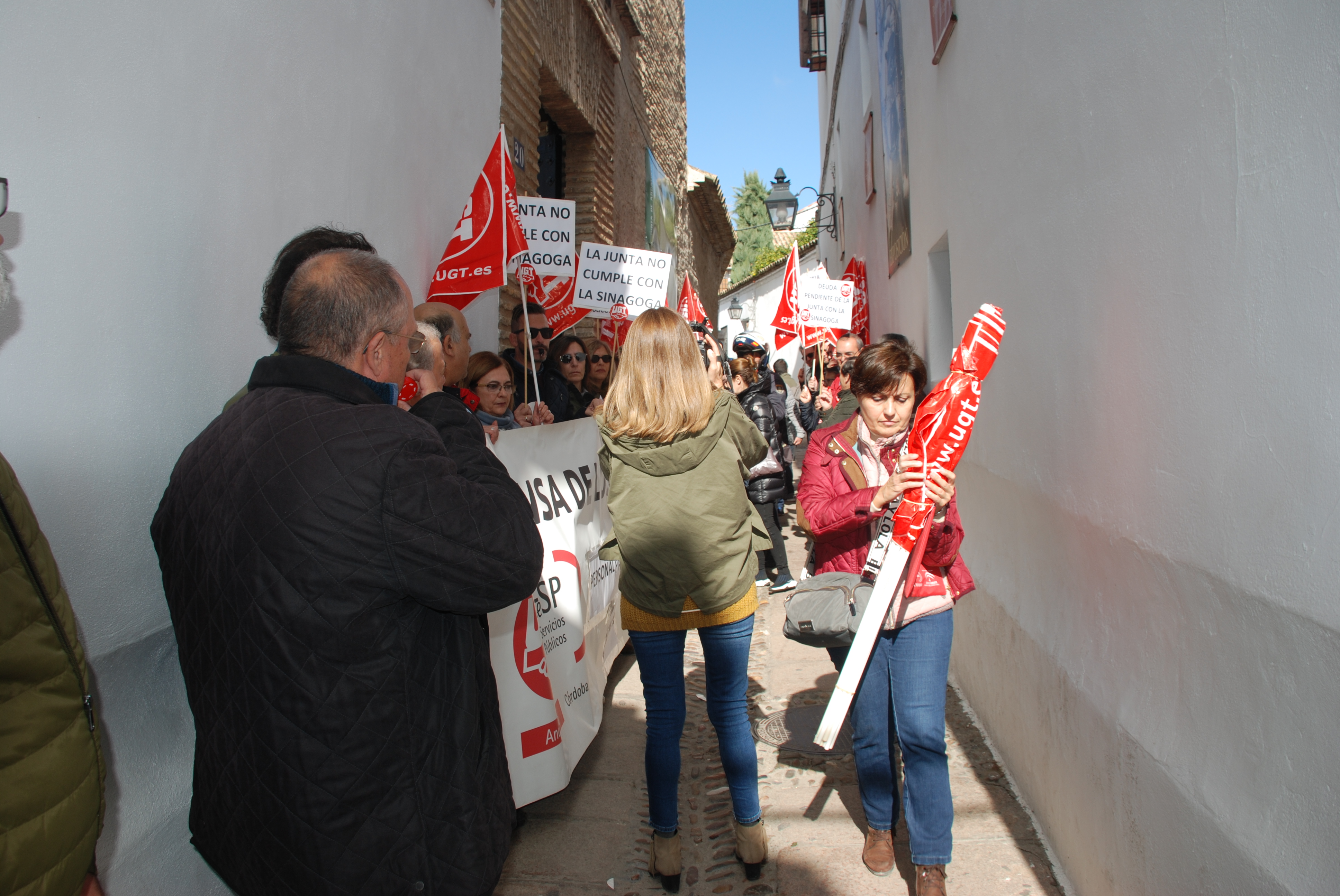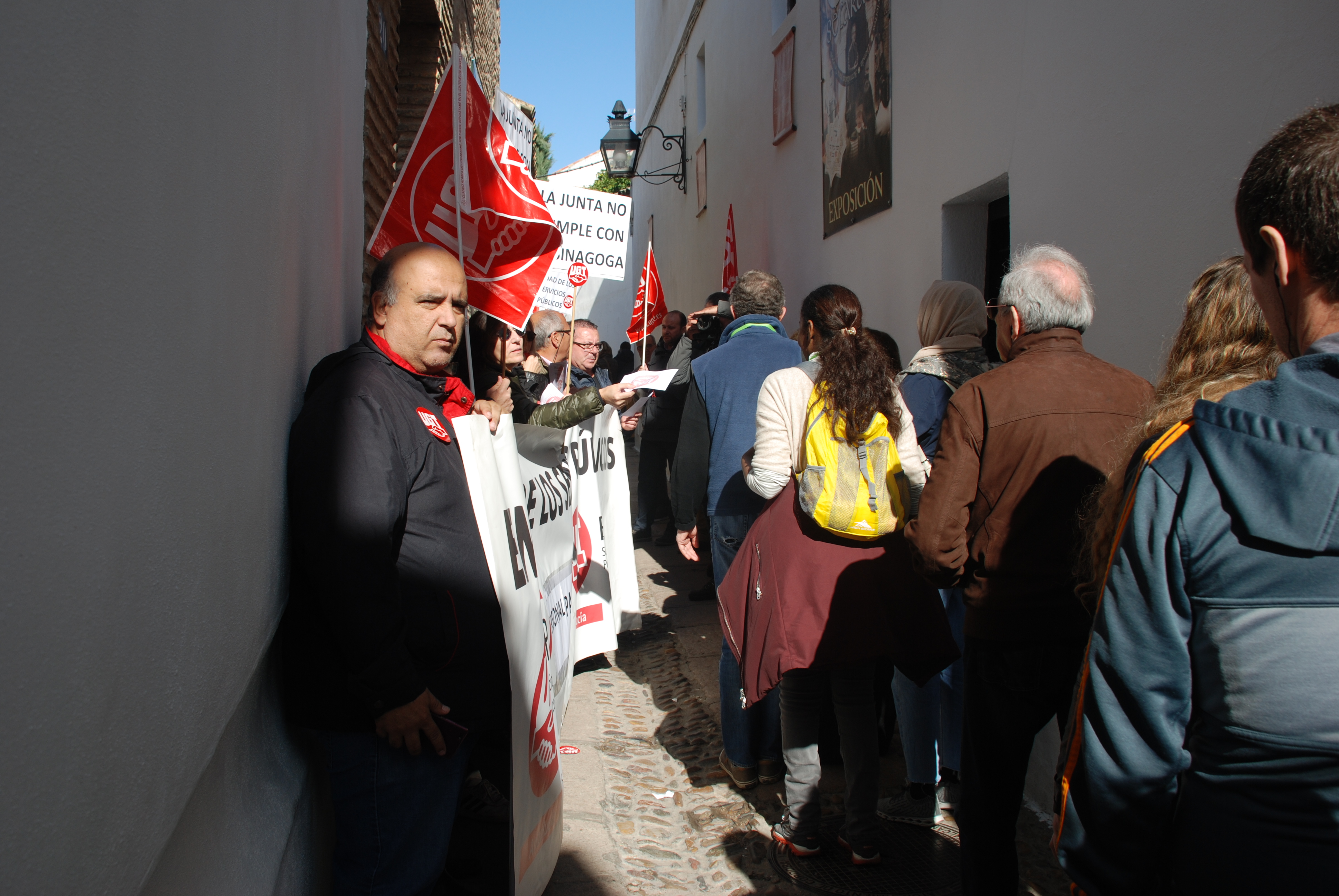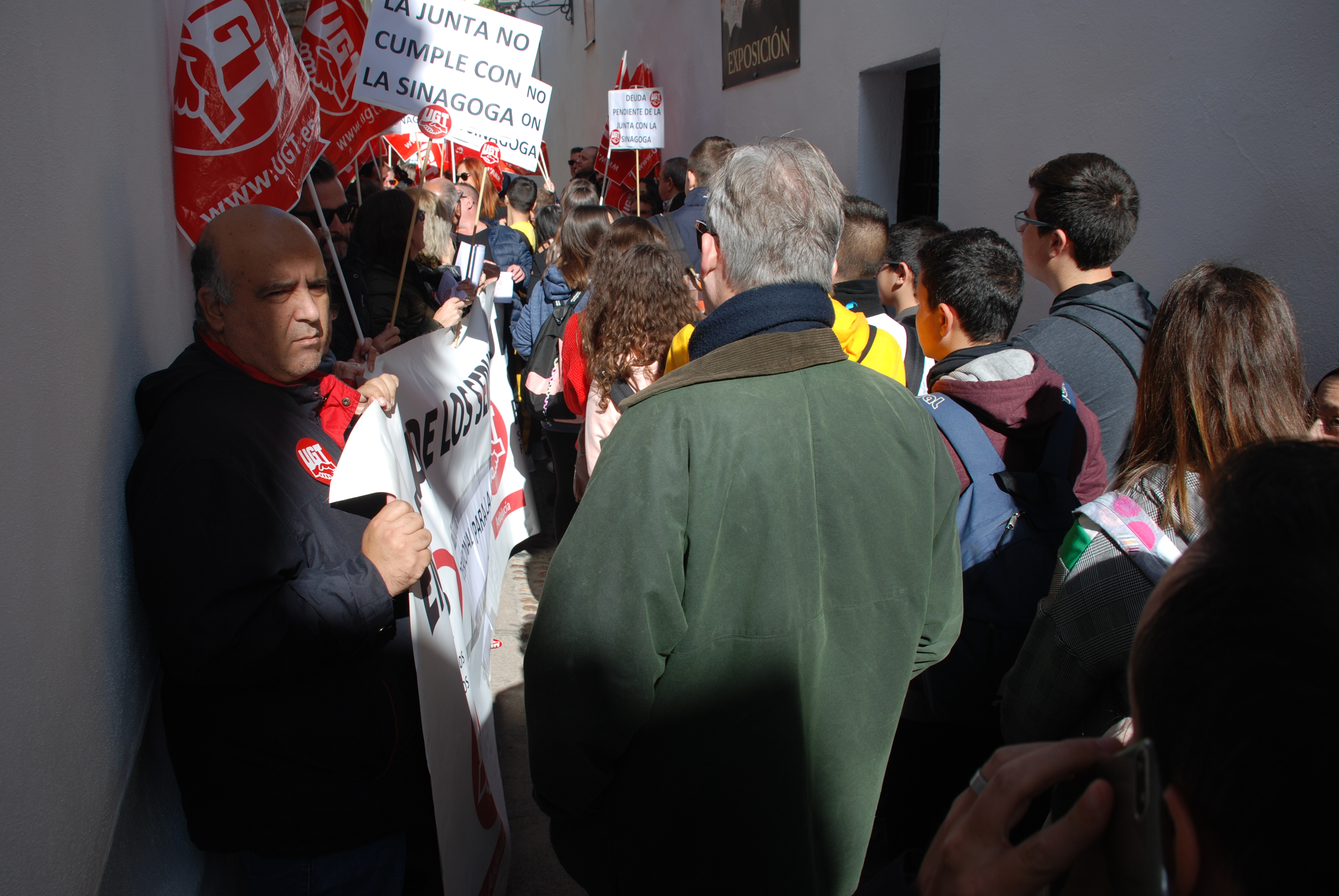 Esta mañana nos hemos concentrado en las puertas de la Sinagoga para reclamar la urgente necesidad de modificación de la Relación de Puestos de Trabajo de dicho centro, en aras de un buen funcionamiento, un mejor servicio y una óptima atención a los visitantes de este enclave monumental.