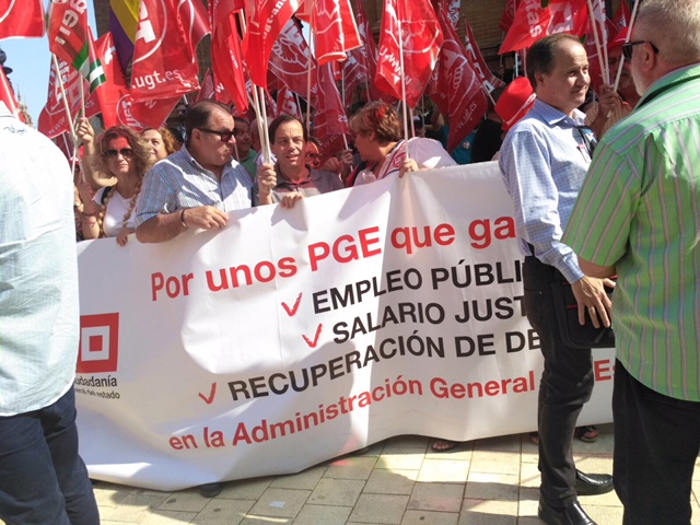 Ayer martes se celebró una concentración, a nivel regional, convocada por UGT y CCOO en Sevilla para denunciar el progresivo deterioro de las condiciones laborales de los trabajadores y trabajadoras de la Administración General del Estado (AGE). En la concentración participaron más de 400 delegados y delegadas de toda Andalucía y estuvieron acompañados por Carlos Álvarez, secretario de la Administración General del Estado de FeSP-UGT.