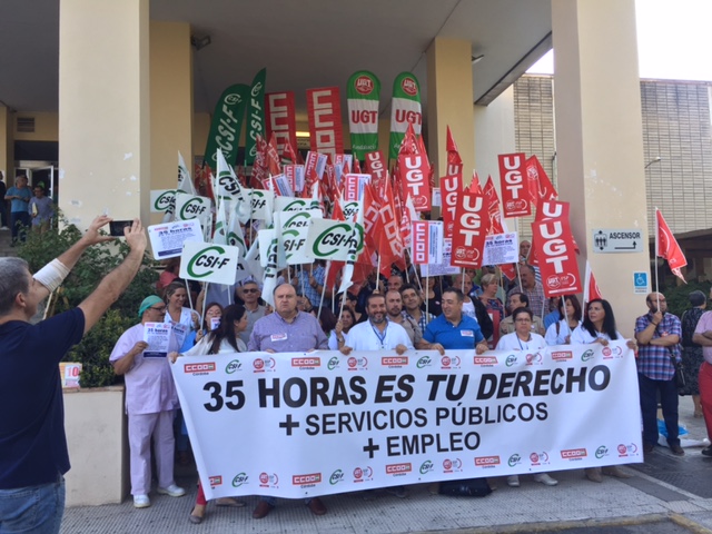 Continuamos con las concentraciones de 15 minutos en los centros de trabajo. Esta mañana hemos acompañado a los compañeros y compañeras del Hospital Provincial.