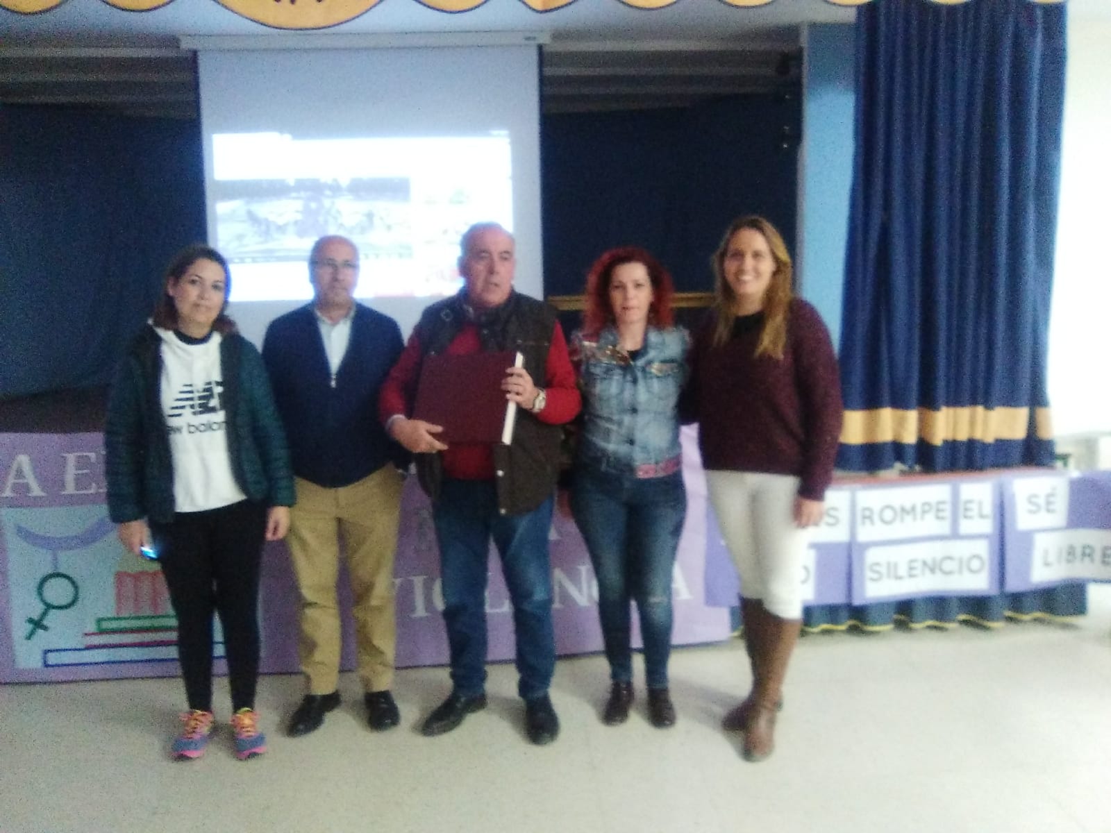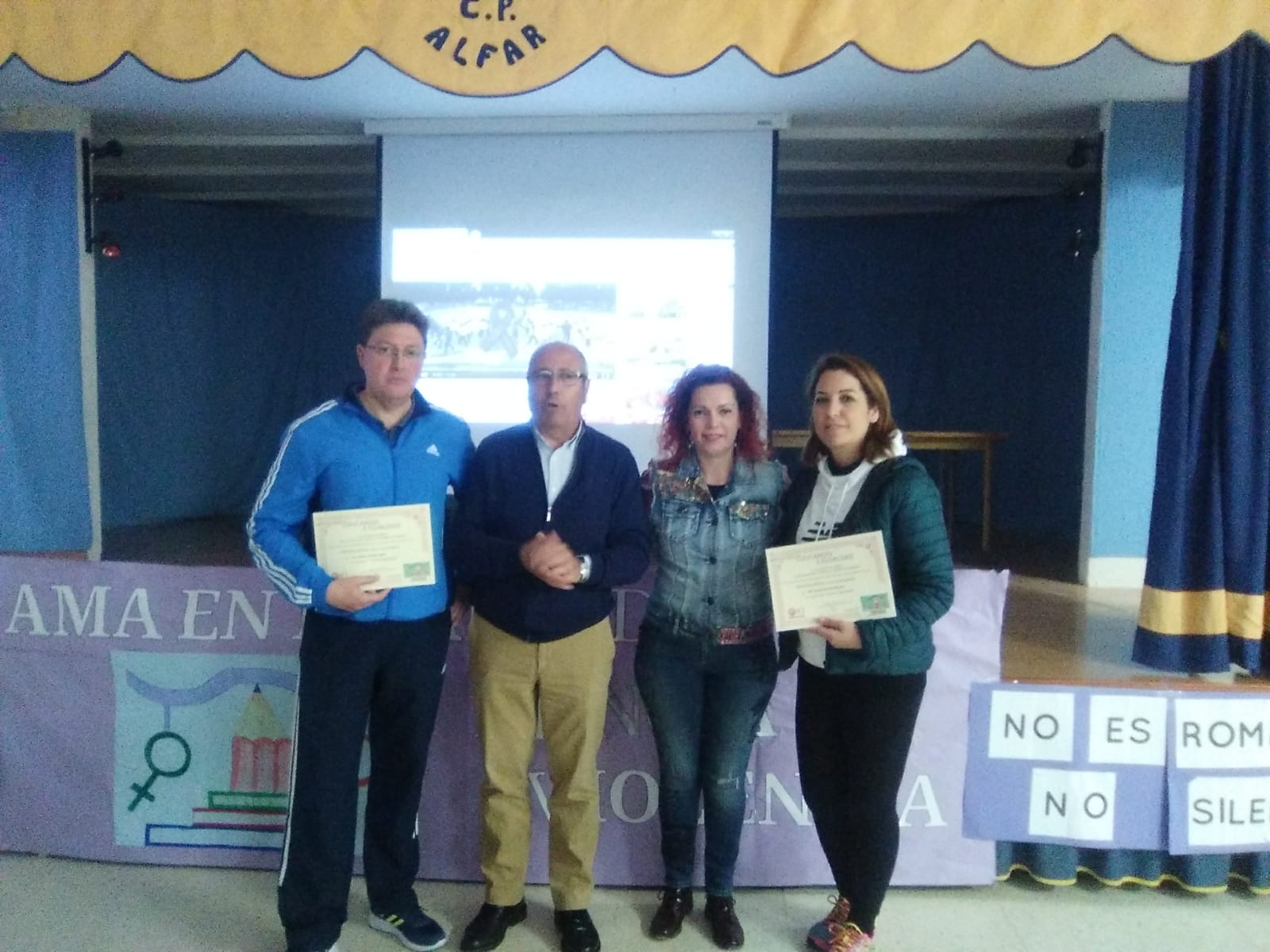 Con motivo del VI Concurso de videos «Ama en Igualdad. Di no a la Violencia de Género» celebrado en toda la geografía española y en el que han participado un número muy importante de Colegios, el Jurado ha otorgado una Mención Especial al CEIP «Alfar» de La Rambla. Desde nuestra Federación Provincial, hemos querido homenajear al Centro, con la entrega de una placa, a los coordinadores y a las alumnas y alumnos de 6º A y B que participaron en tan magnífico trabajo.