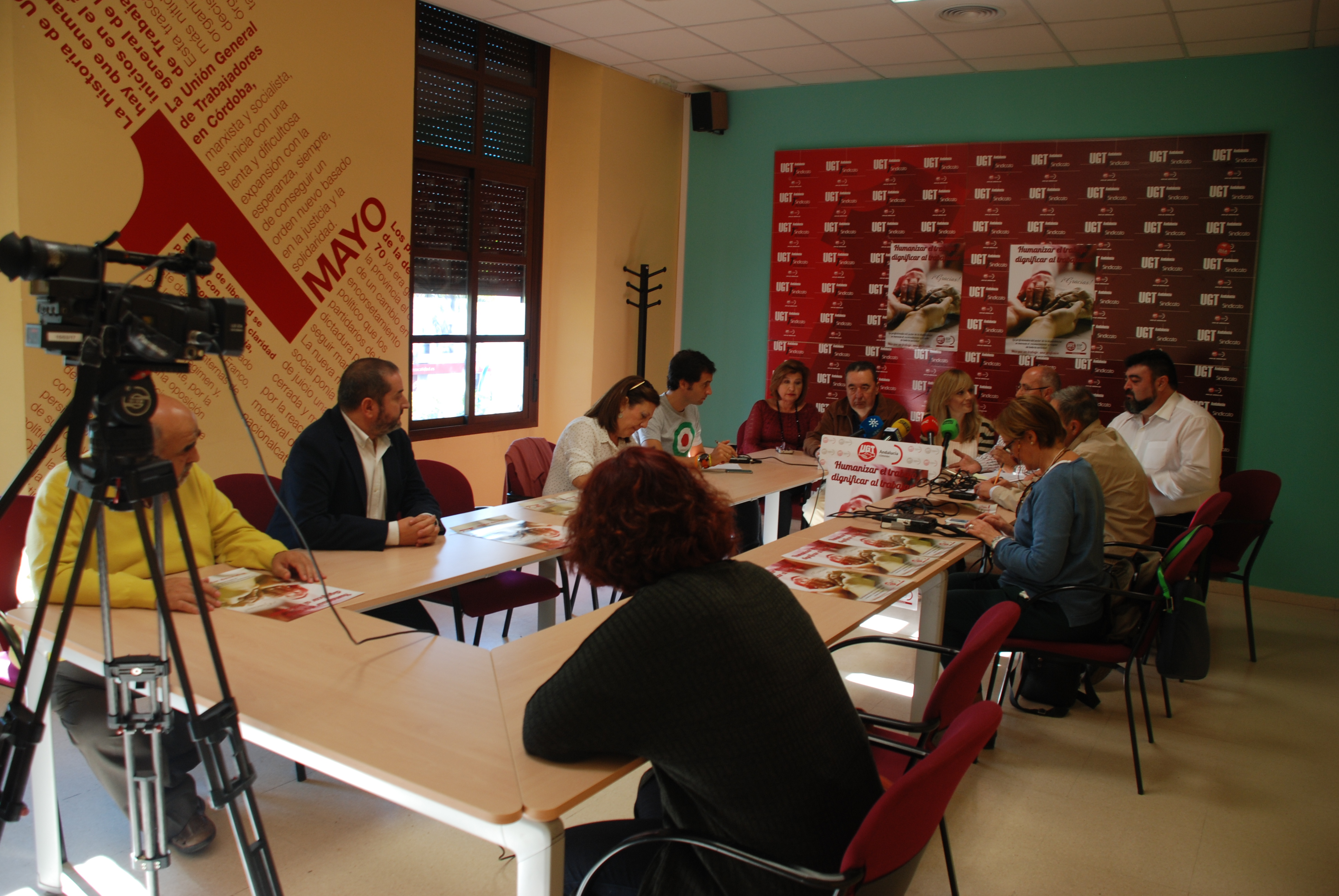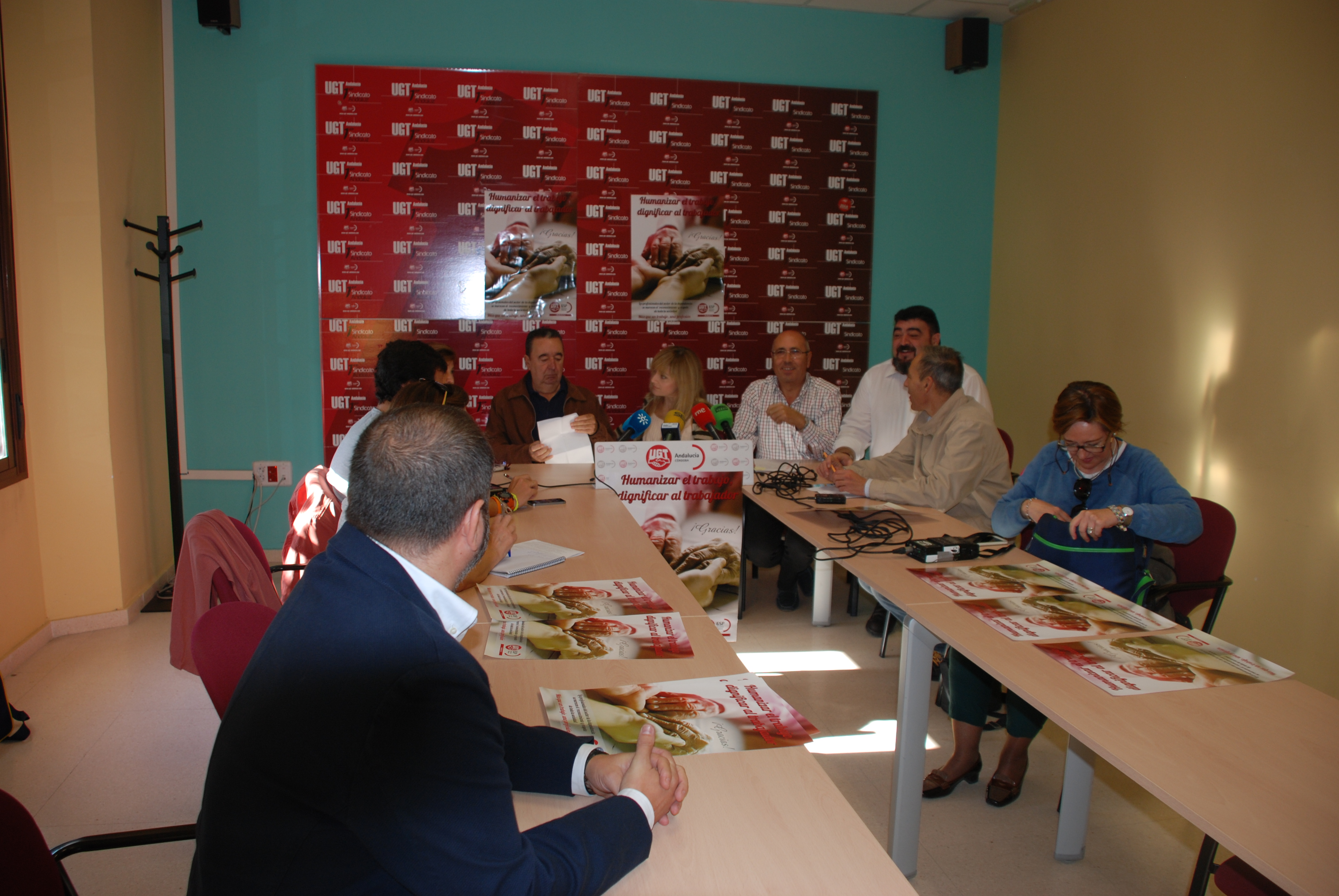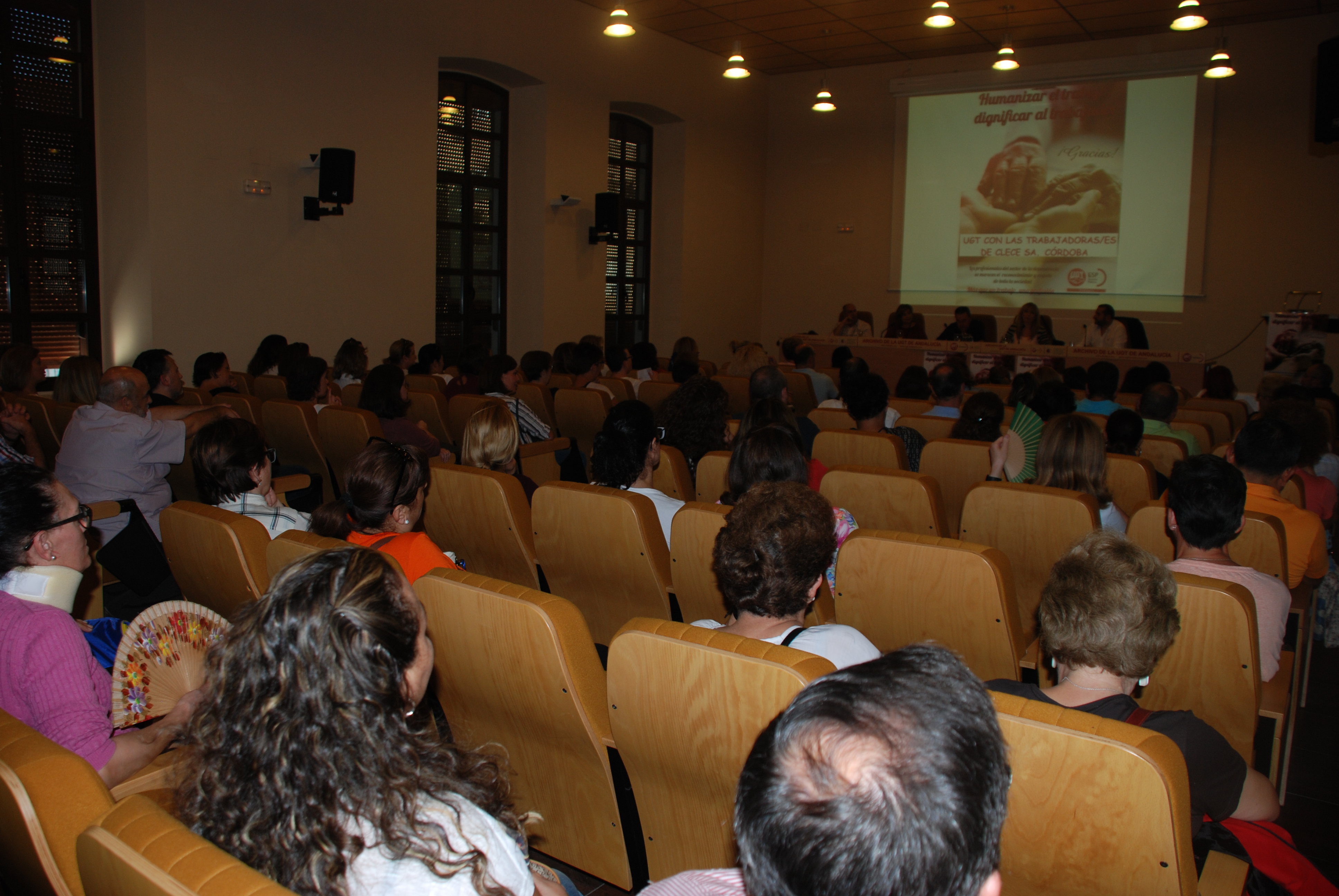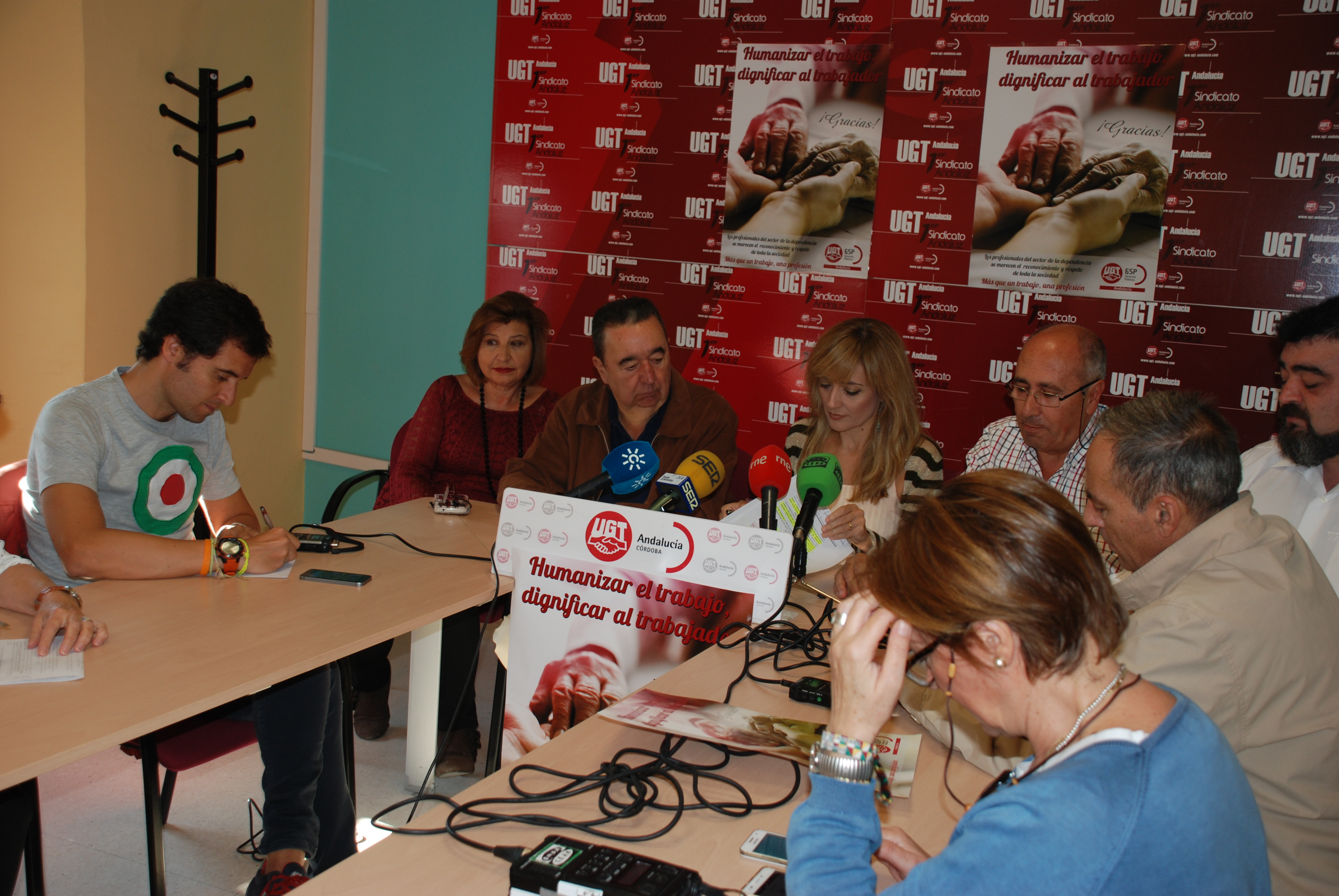 La Jornada comenzó con una rueda de prensa en la que intervinieron Carmen Castilla, Secretaria General de UGT Andalucía; Antonio Tirado, Secretario General de FeSP-UGT Andalucía; Isaías Ortega, Secretario General de FeSP-UGT Córdoba y Rosario Crespo, Responsable de la Sección Sindical de Ayuda a Domicilio de FeSP-UGT Córdoba. En dicha rueda de prensa, se puso de manifiesto la importante labor y el magnífico trabajo que están realizando las compañeras y compañeros de la Sección Sindical de UGT en la empresa CLECE, en la que, en unos años, han conseguido con su acción sindical convertir hasta el 80% de la plantilla en personal indefinido y, entre otras muchas cuestiones, la readmisión de muchas trabajadoras y trabajadores que habían sido despedidos de manera improcedente.