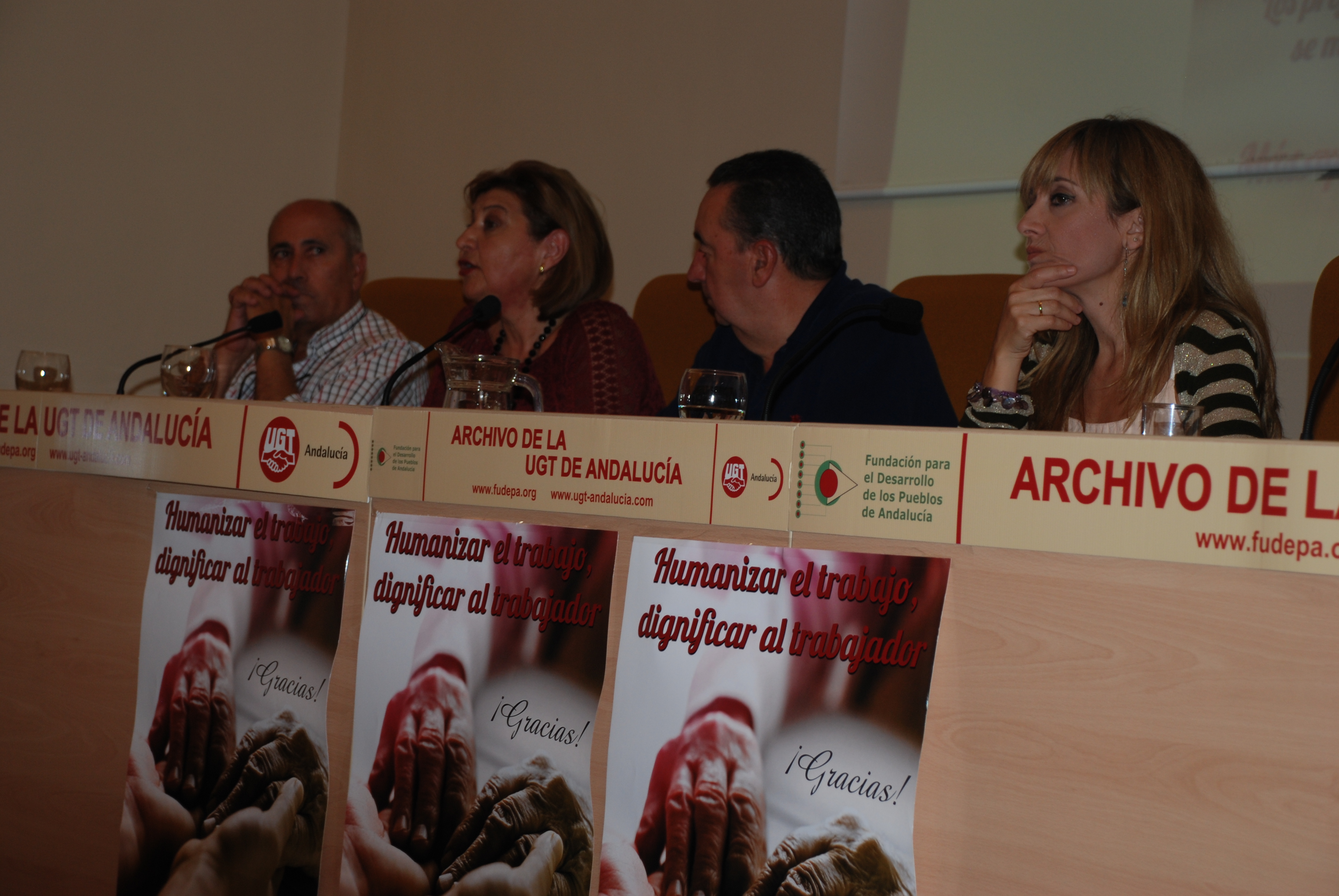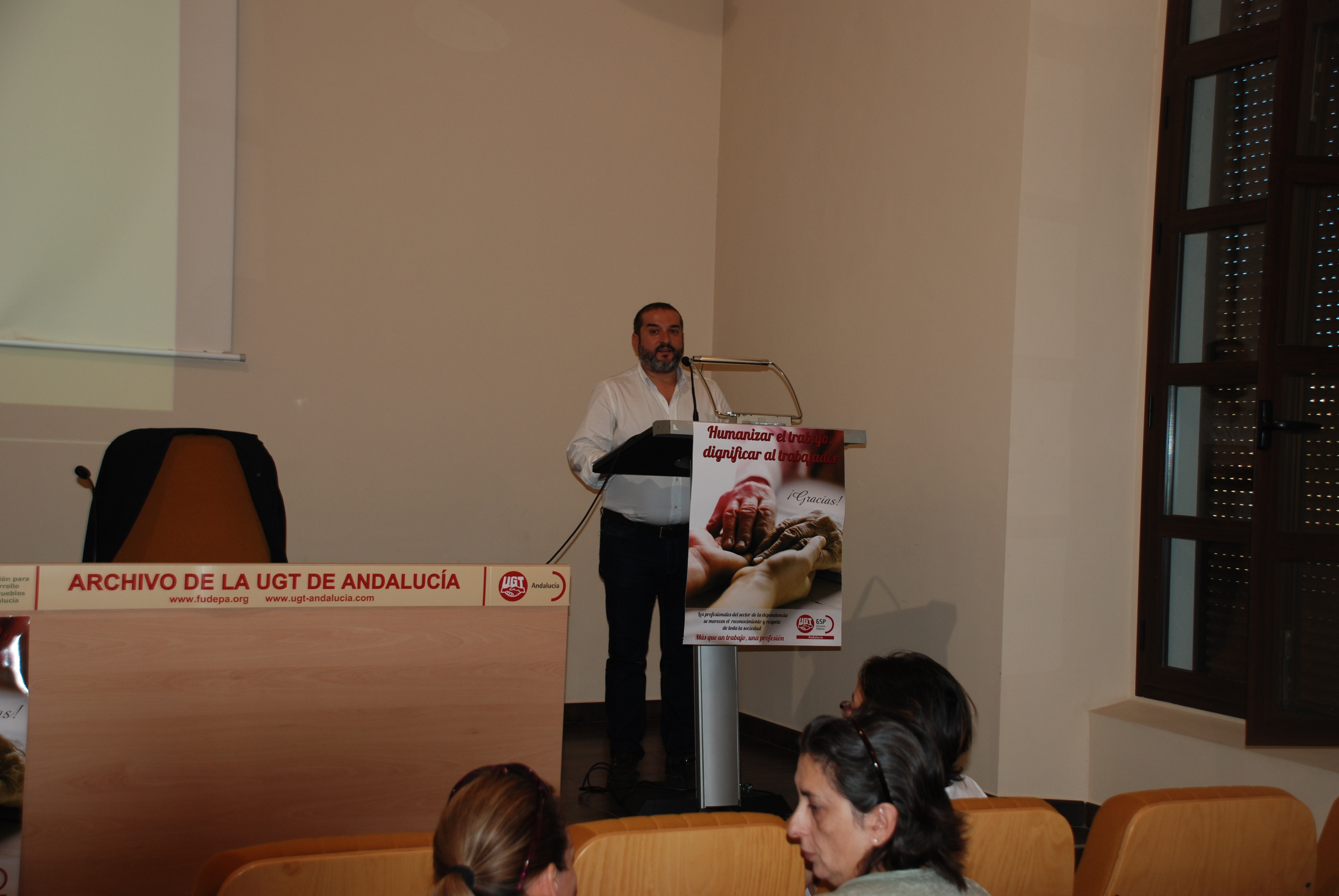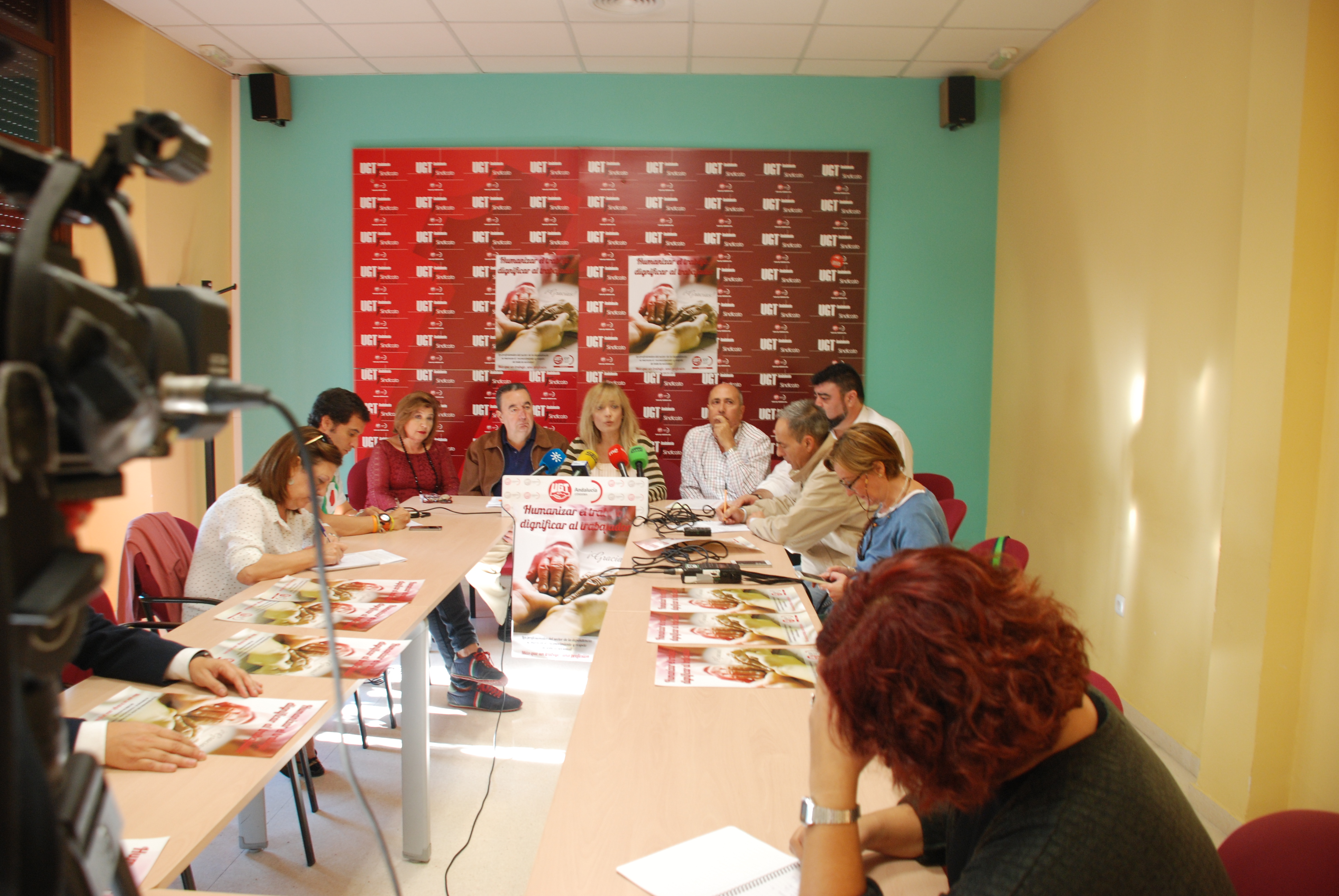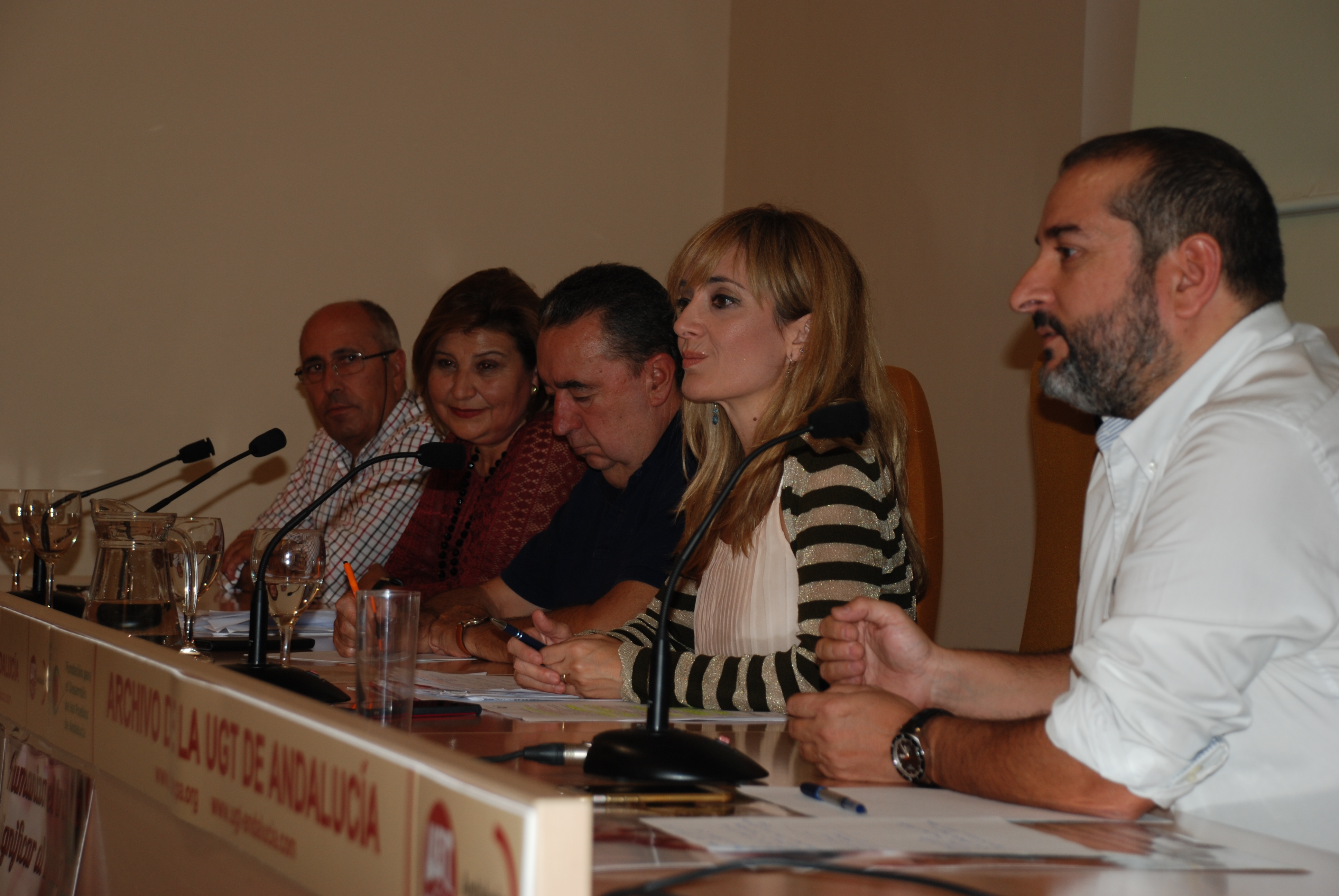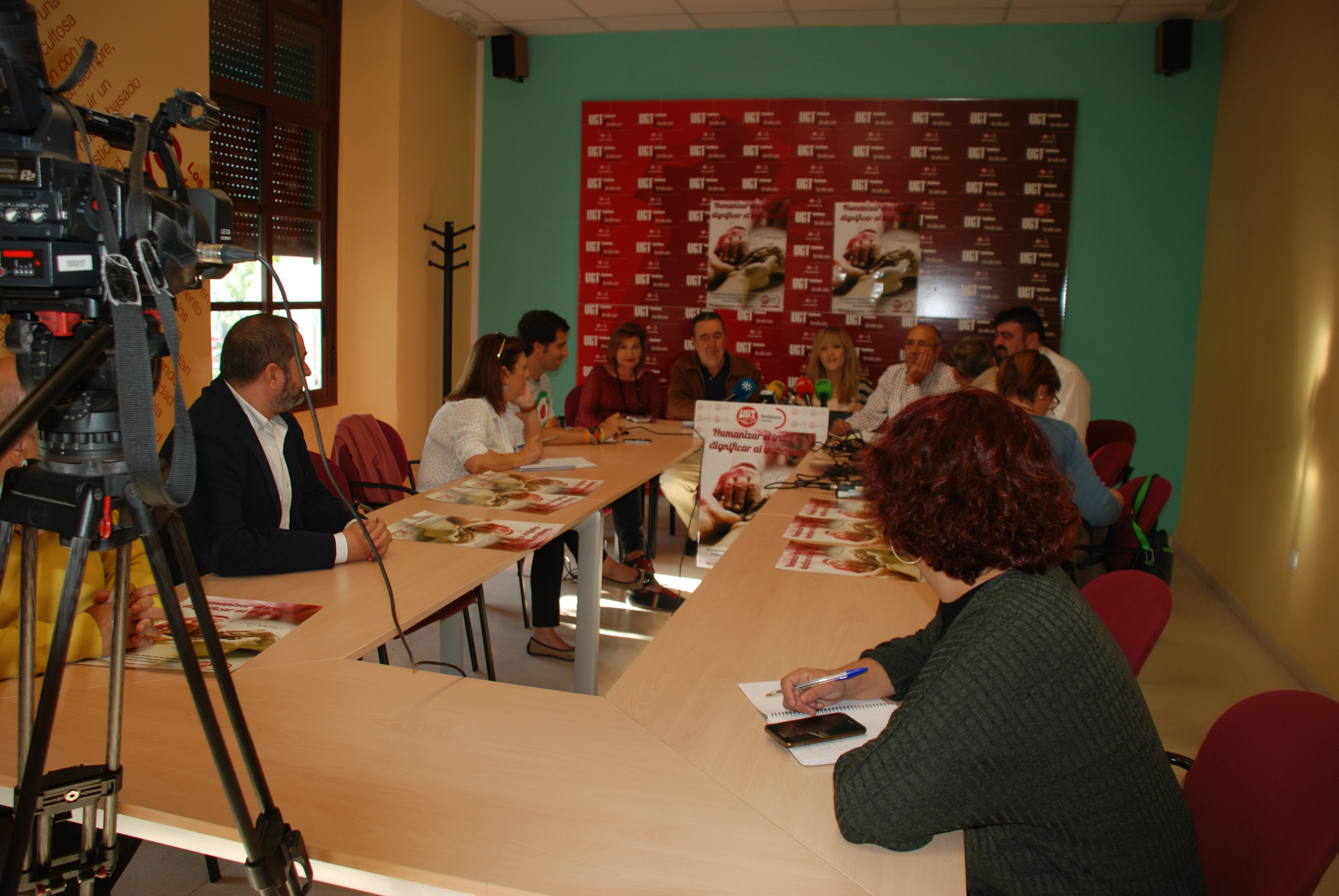 La Jornada comenzó con una rueda de prensa en la que intervinieron Carmen Castilla, Secretaria General de UGT Andalucía; Antonio Tirado, Secretario General de FeSP-UGT Andalucía; Isaías Ortega, Secretario General de FeSP-UGT Córdoba y Rosario Crespo, Responsable de la Sección Sindical de Ayuda a Domicilio de FeSP-UGT Córdoba. En dicha rueda de prensa, se puso de manifiesto la importante labor y el magnífico trabajo que están realizando las compañeras y compañeros de la Sección Sindical de UGT en la empresa CLECE, en la que, en unos años, han conseguido con su acción sindical convertir hasta el 80% de la plantilla en personal indefinido y, entre otras muchas cuestiones, la readmisión de muchas trabajadoras y trabajadores que habían sido despedidos de manera improcedente.
