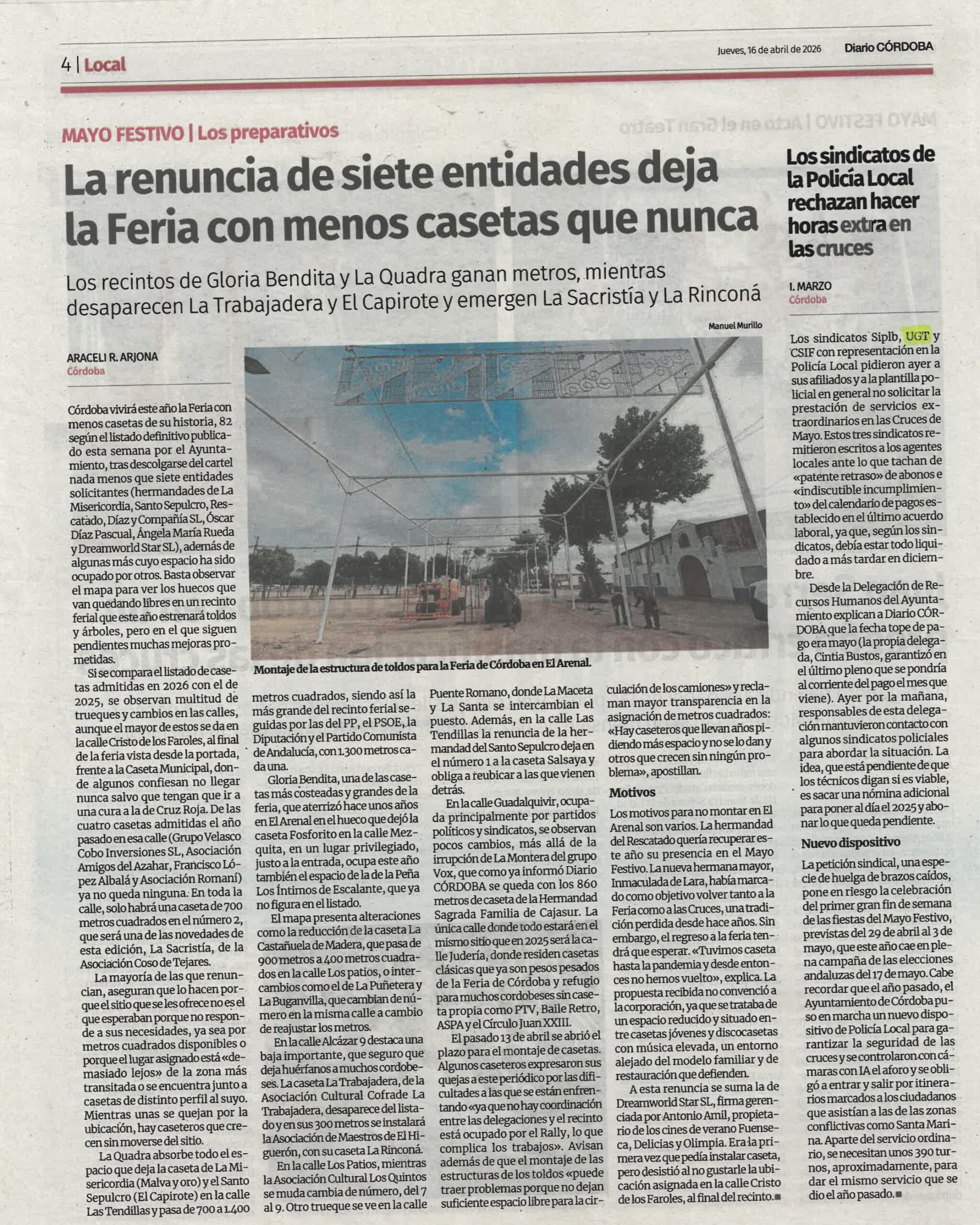 Los sindicatos de la Policía Local rechazan hacer horas extras en las cruces