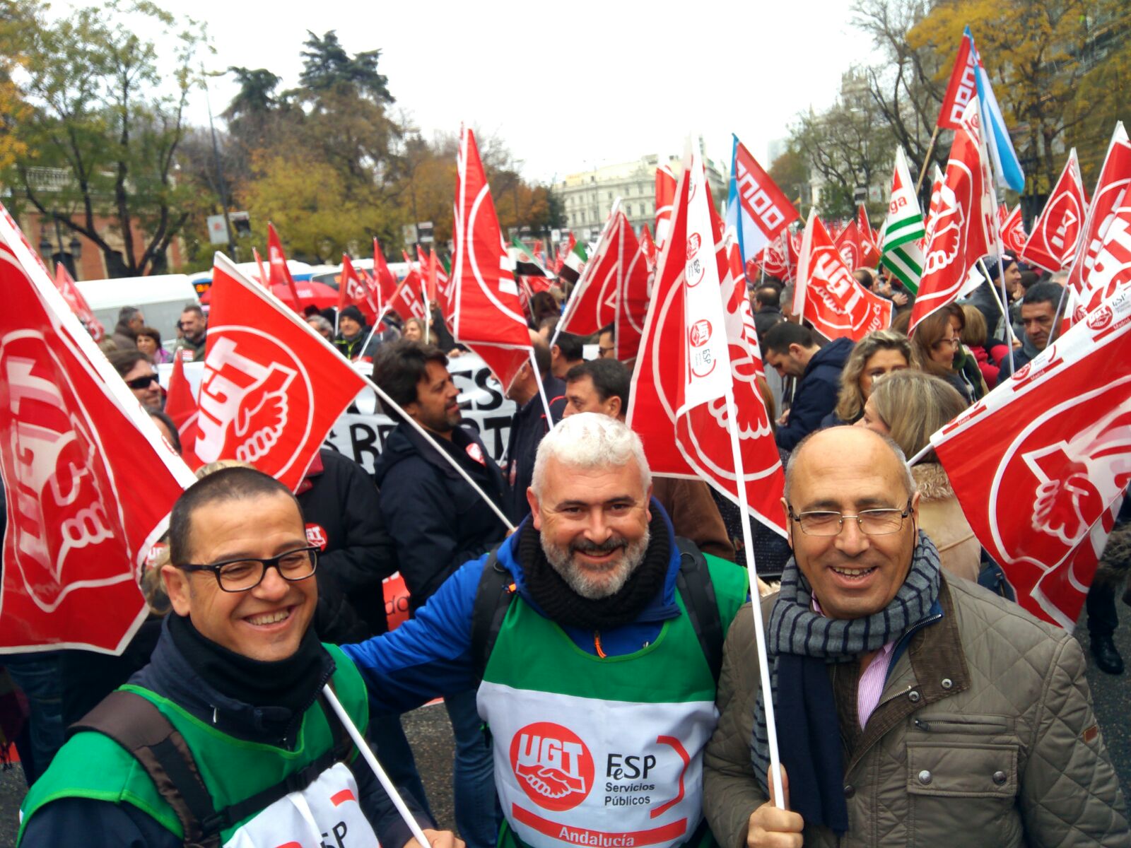 Compañeros y compañeras de la Federación Provincial nos hemos desplazado a Madrid para asistir a la Manifestación celebrada esta mañana para reclamar la recuperación de la negociación colectiva, el empleo y el poder adquisitivo de los empleados y empleadas de los Servicios Públicos