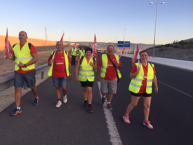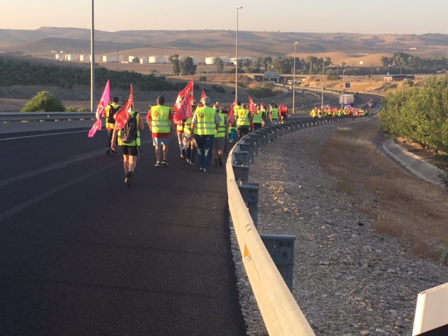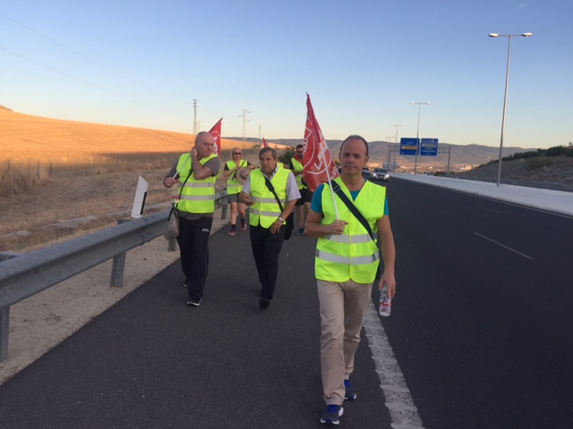Esta mañana hemos acompañado, en la salida desde Córdoba, a los compañeros y compañeras que estan realizando la marcha a Madrid, exigiendo unas pensiones dignas.