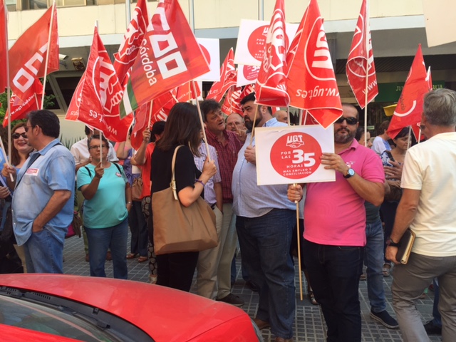 Esta mañana hemos iniciado, los tres sindicatos presentes en Mesa general, las movilizaciones contra la decisión del Gobierno Central de recurrir ante el Tribunal Constitucional, la jornada de 35 horas semanales.
