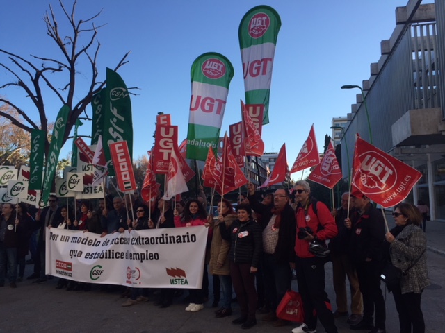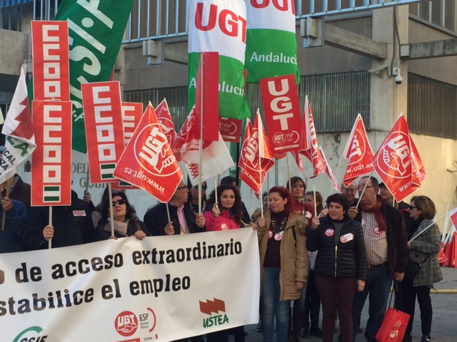 Hoy ha tenido lugar una concentración en la Subdelegación del Gobierno en Córdoba en la que UGT ha reivindicado un modelo de acceso que estabilice el empleo.