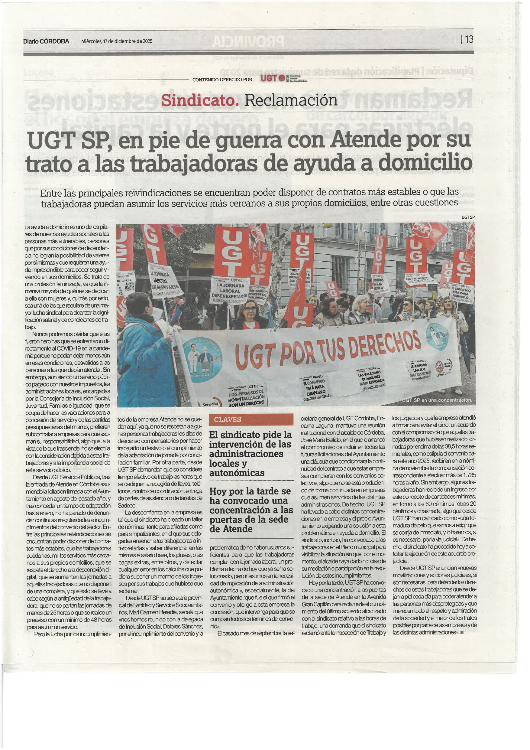 UGT SP CÓRDOBA EN PIE DE GUERRA CON ATENDE