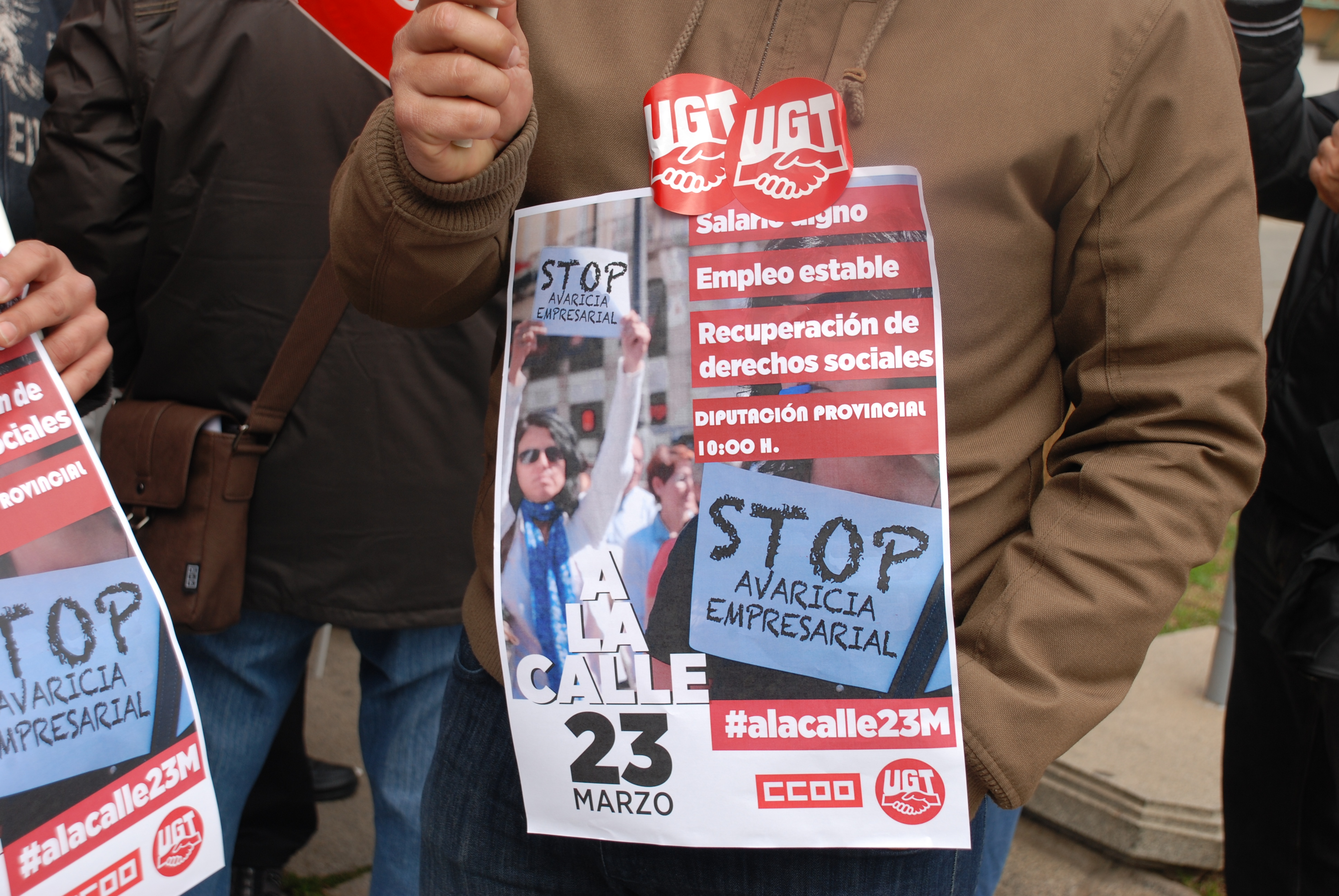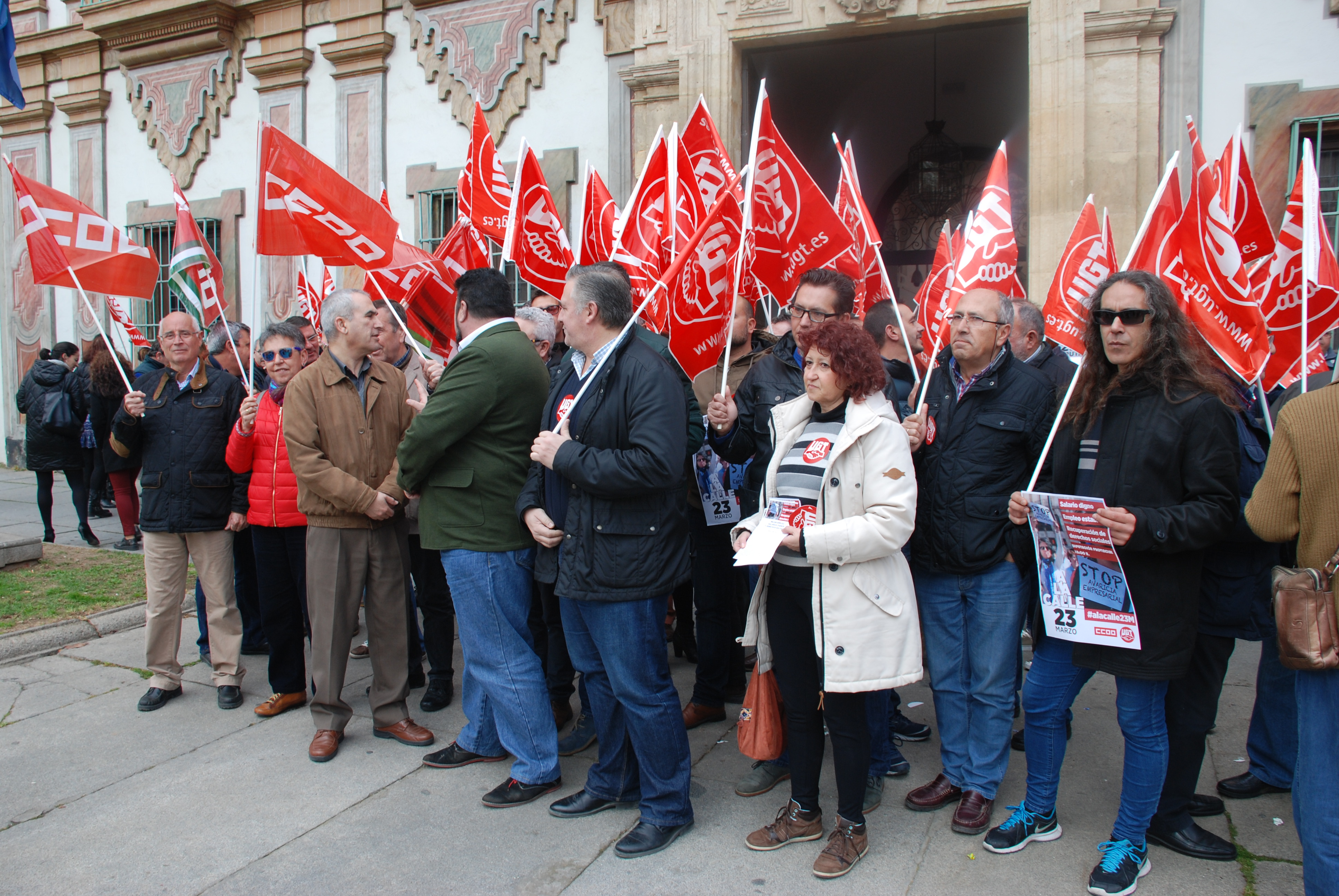 Continuando con las movilizaciones del mes de febrero, y ante la actitud del Gobierno y la patronal, nos hemos concentrado esta mañana en las puertas de la Diputación reivindicando la dignificación salarial, el empleo estable y la recuperación de los derechos sociales arrebatados a la clase trabajadora durante estos años.